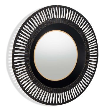 Crafted from the highest quality materials, the Chandu Mirror is a must-have for any discerning homeowner. With its unique round shape, luxurious bronze metal frame, and beautiful gold accents, it adds a touch of sophistication to any living space.