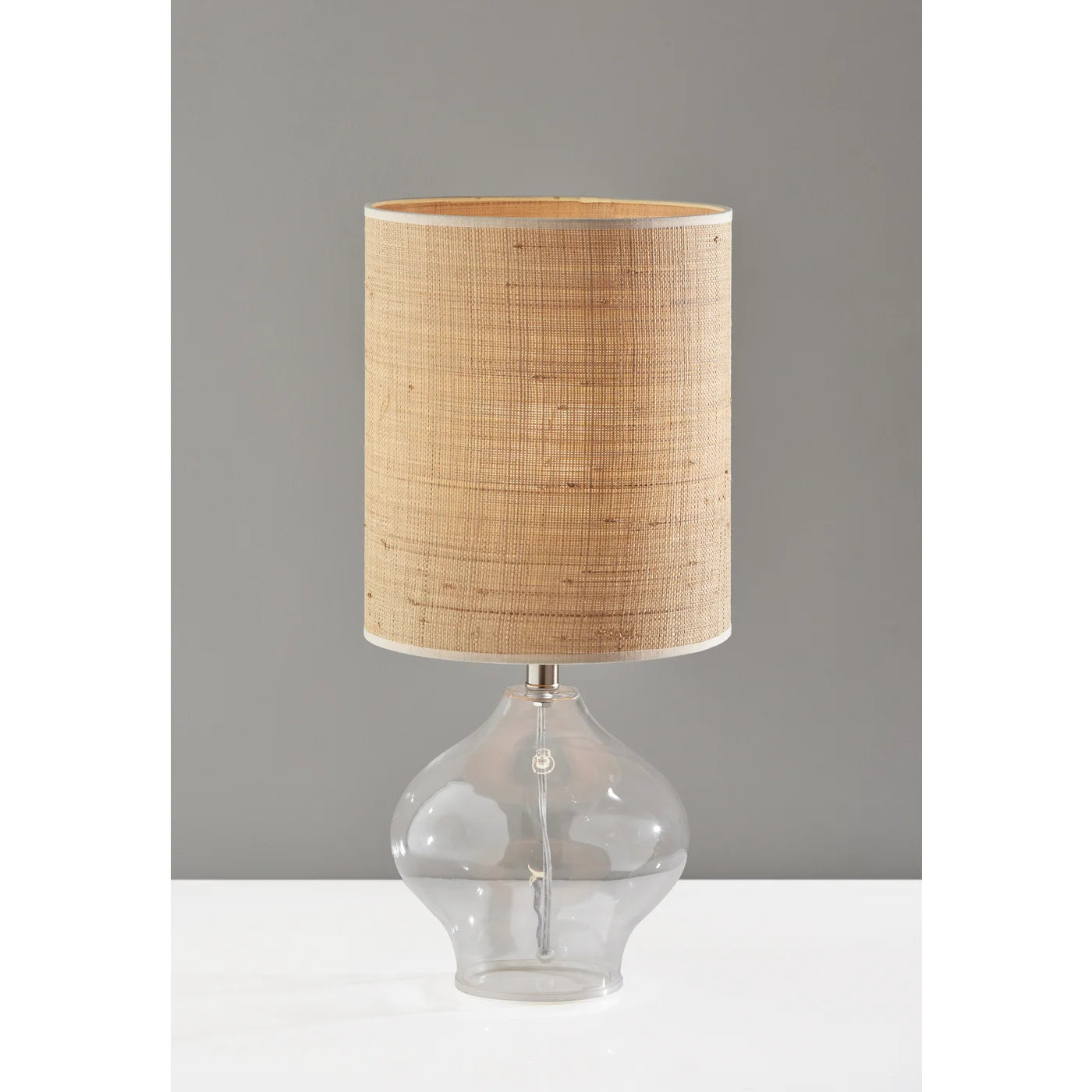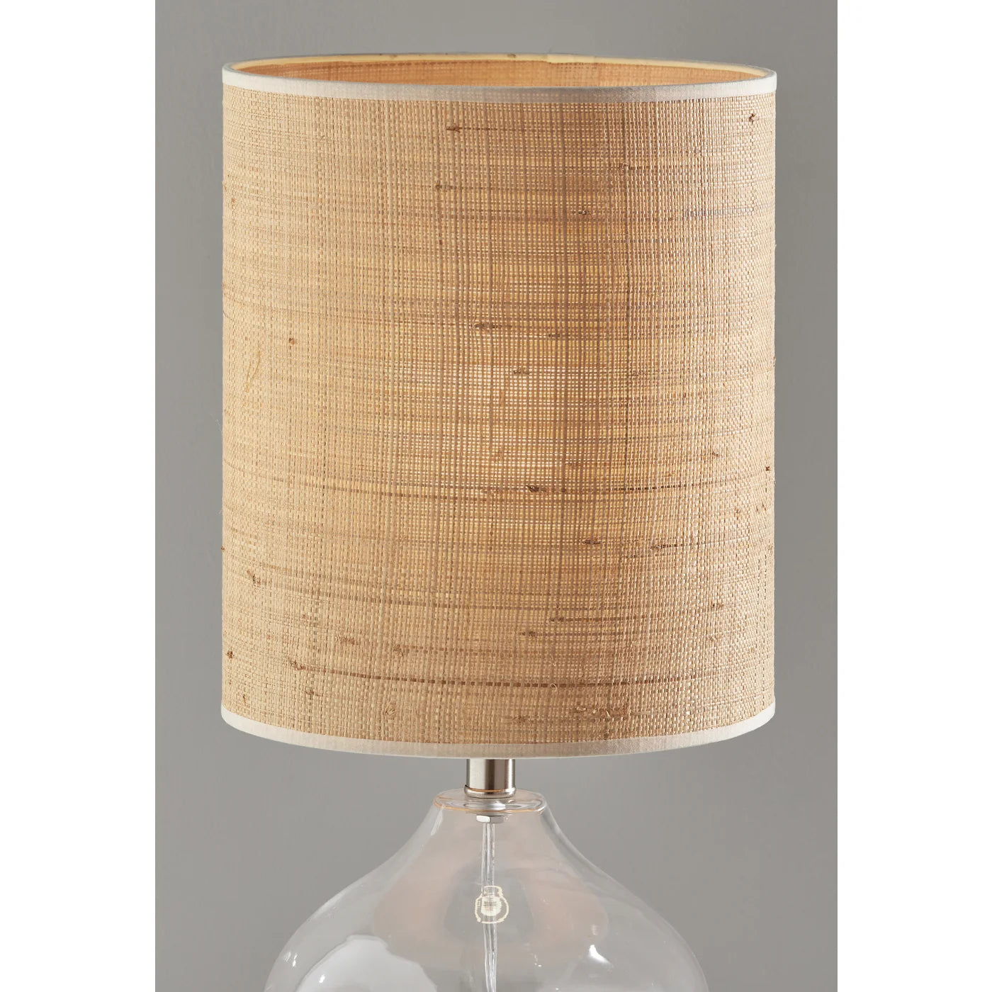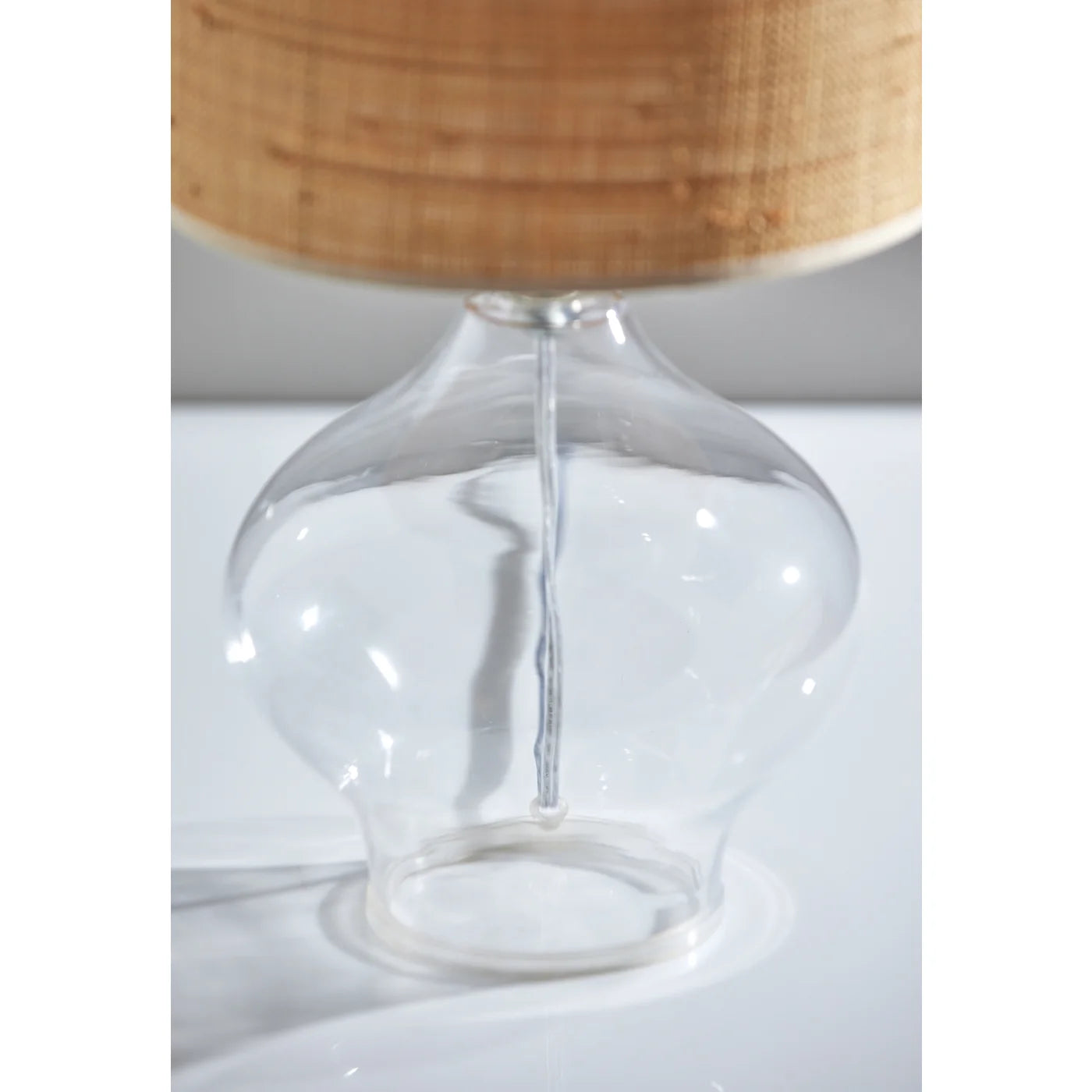 The Elea lamp is the perfect addition to your console, night stand or credenza table. The smooth glass base is beautifully paired with a woven rattan shade with a beige trim.